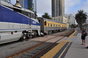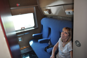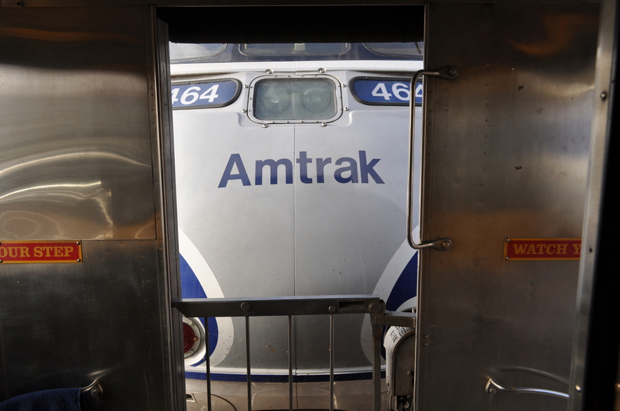 Riding in a 1950's railroad car, pulled by AMTRAK
